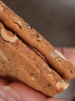 Dévorez notre double tablette biscuitée noisette et graines garnie d’un praliné amande/noisette.